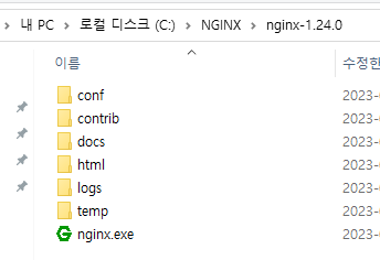 C 드라이브 아래 NGINX 폴더를 만들고 압축해제하겠습니다.