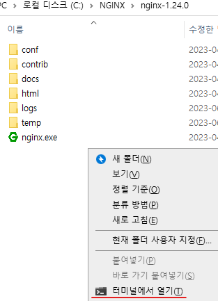NGINX 폴더에서 터미널을 열겠습니다.