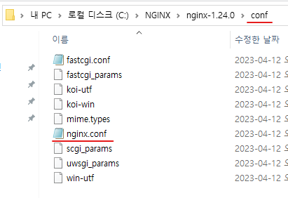 nginx conf 폴더에 nginx.conf 파일을 열어보겠습니다.