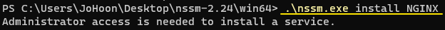 nssm을 사용해 NGINX를 서비스 등록해 보겠습니다.