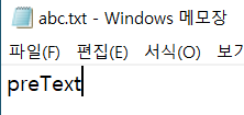 abc.txt 파일 내 preText 문자를 변경해 보겠습니다.