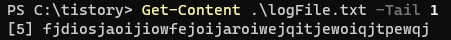 Get-Content로 파일을 읽고 -Tail 옵션으로 원하는 라인 개수를 입력해 출력합니다.