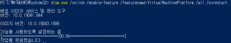 dism.exe /online /enable-feature /featurename:VirtualMachinePlatform /all /norestart