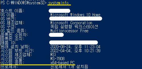 systeminfo를 입력하여 시스템 종류를 찾아보세요!