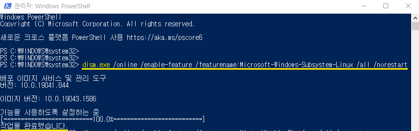 dism.exe /online /enable-feature /featurename:Microsoft-Windows-Subsystem-Linux /all /norestart