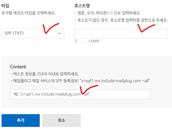 - 타입: SPF(TXT) , 호스트명: _acme-challenge, Content: 노란색 밑줄 복사하여 붙여넣기