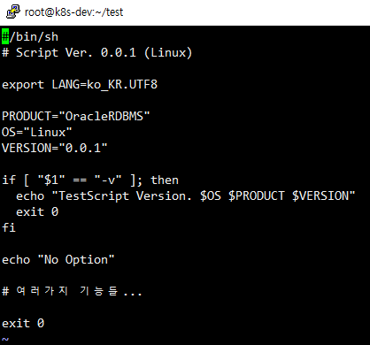 제품명(PRODUCT), 운영체제(OS), 현재 스크립트 버전(VERSION) 등을 변수에 담아 스크립트의 현재 버전을 출력해보는 스크립트입니다.