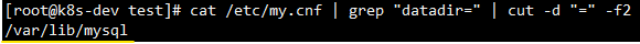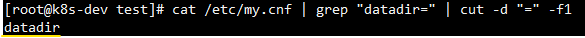 즉, datadir=/var/lib/mysql 값이 ' = '을 기준으로 필드 1, 2로 나누어졌고 -f2 옵션을 통해 2번 필드가 출력된 겁니다.